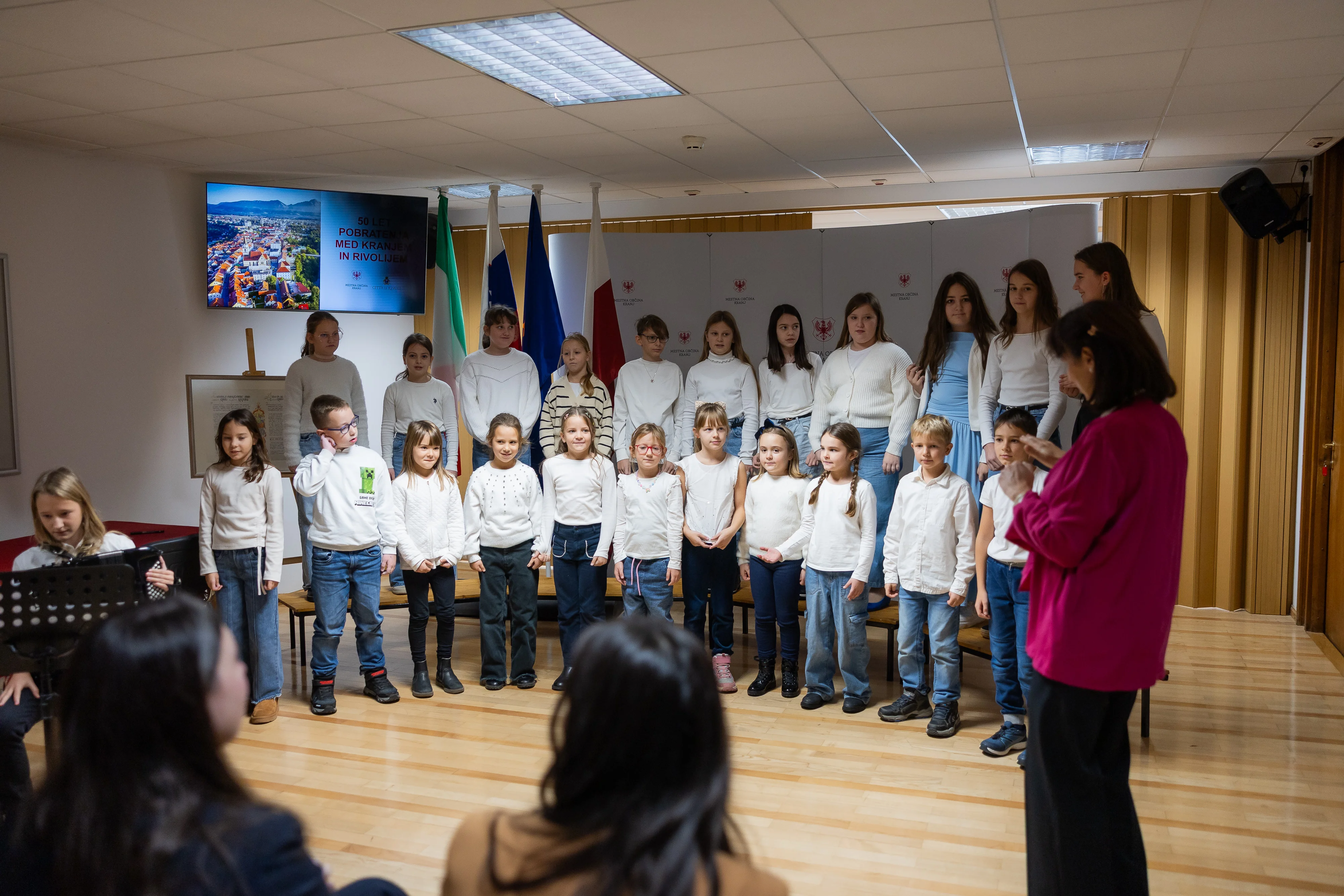 Dogodka ob 50. obletnici pobratenja med Kranjem in Rivolijem, ki je potekal v slovenskem in italijanskem jeziku, se je udeležila tudi namestnica veleposlanika Italije v Sloveniji Anthea Sara Mazzucchelli in nagovorila zbrane. Praznovanje je popestril Otroški pevski zbor in mladinska skupina Osnovne šole Janeza Puharja Kranj – Center z zborovodkinjo Jasmino Pecić Tagliaferri. Zapeli so skladbi Čez kokrški most in Insieme. Mestna občina Kranj (MOK) je gostom pokazala še video z italijanske kuharske delavnice za kuharje kranjskih osnovnih šol in Kranjskih vrtcev, ki jo je v eni od kranjskih picerij vodil kuhar mentor Armando Nevicato iz Kalabrije. MOK je namreč ob 50. obletnici pobratenja šole skušala spodbuditi, da učenkam in učencem v tem mesecu za šolsko malico pripravijo nekaj tipično italijanskega.