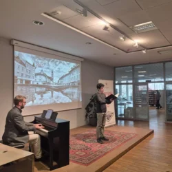 Mestna občina Kranj je 13. Kranjski zbornik uradno predstavila danes v Mestni knjižnici Kranj. Predstavitev sta pospremila dva nastopa Glasbene šole Kranj. Baritonist Mark Gazvoda in pianist Gašper Jereb sta izvedla pesem Pred durmi skladatelja Josipa Pavčiča, ki je v glasbo odel verze Simona Jenka, ter Prešernovo pesem Kam, pod katero se je podpisal skladatelj Fran Gerbič.