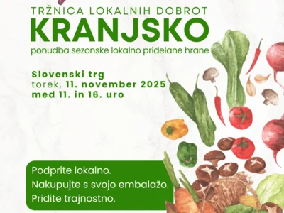 Mestna občina Kranj skupaj z Zavodom za turizem in kulturo Kranj, Komunalo Kranj, Centrom Stonoga in Društvom Sorško polje vabi na jesensko tržnico lokalnih dobrot – KRANJSKO, ki bo potekala v torek, 11. novembra 2025, med 11. in 16. uro, na Slovenskem trgu.