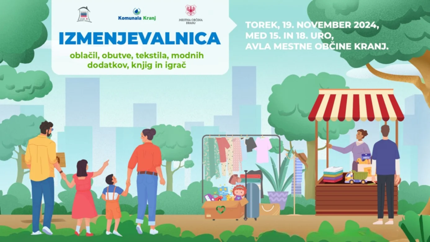 Izmenjevalnica bo potekala v torek, 19. novembra 2024, med 15. in 18. uro v avli Mestne občine Kranj (Slovenski trg 1, 4000 Kranj). Stvari lahko samo prinesete, samo odnesete ali izmenjate, kosov ne štejemo.