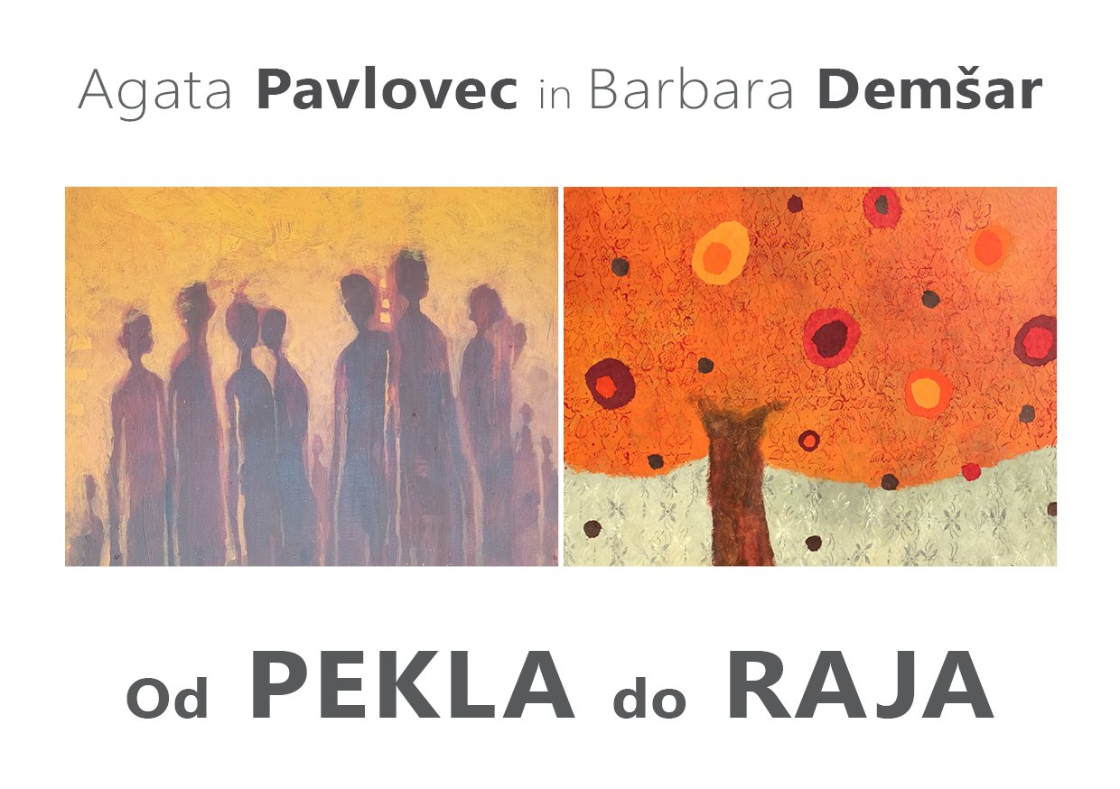 Vljudno vabljeni na odprtje razstave umetnic Barbare Demšar in Agate Pavlovec Od pekla do raja, ki bo v torek, 6. julija 2021, ob 19. uri v Mali galeriji v Kranju.
