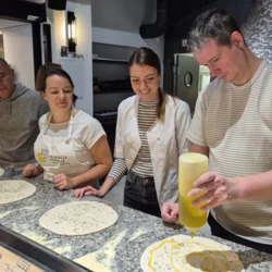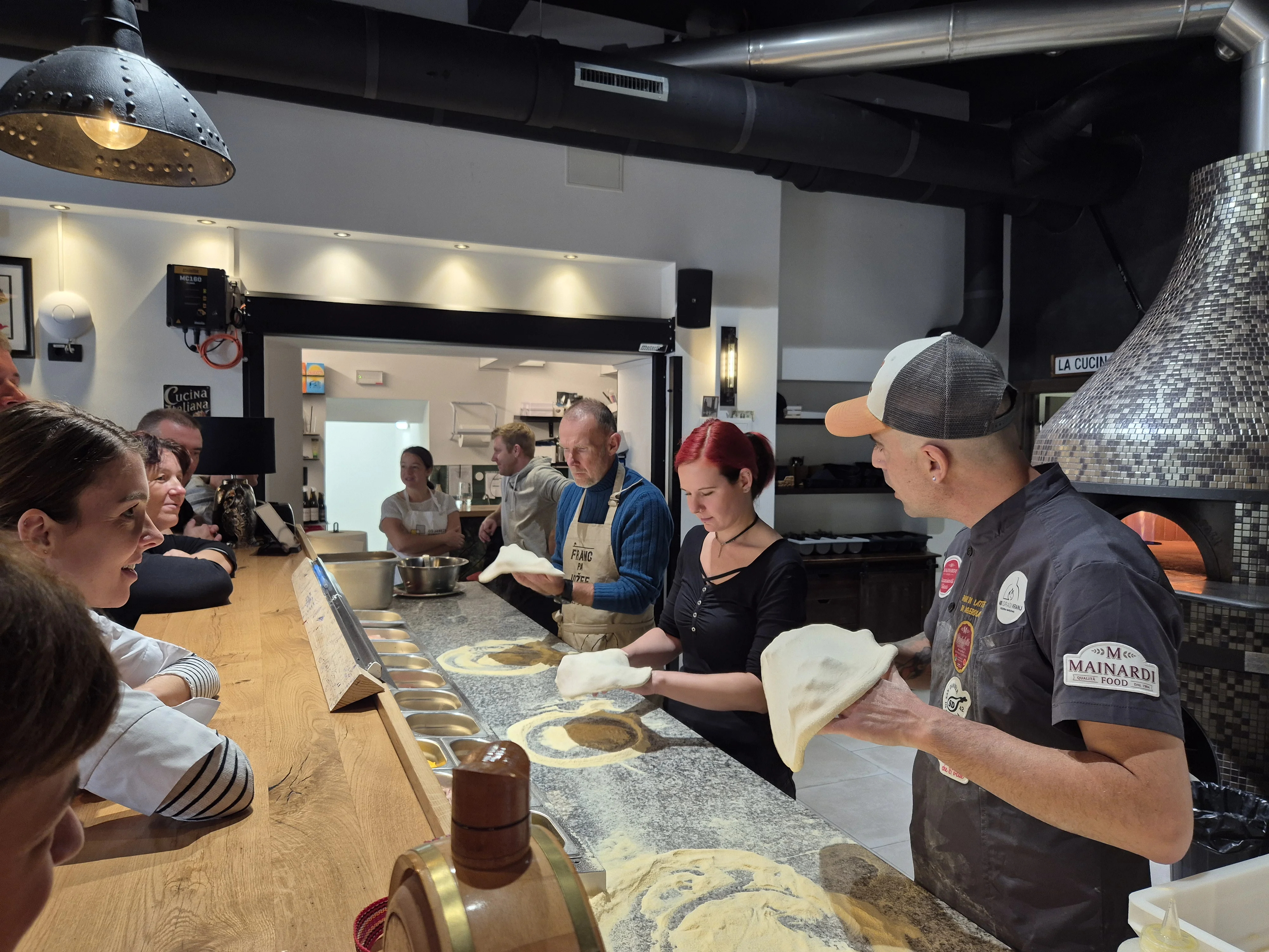 Na kuharski delavnici je sodelovalo 11 udeležencev, poleg šolskih kuharjev še organizatorke šolske prehrane, učiteljice gospodinjstva in ravnatelj. Italijanski chef Armando Nevicato iz Kalabrije jim je pokazal svojo delovno kuhinjo in jim zaupal, kako pripravlja jedi, kakšne sestavine uporablja in na kaj je treba biti posebej pozoren pri peki. Skupaj so pripravili tri različne jedi ter jih tudi poskusili. Kakšna izkušnja je za njimi, si lahko ogledate na tej povezavi.