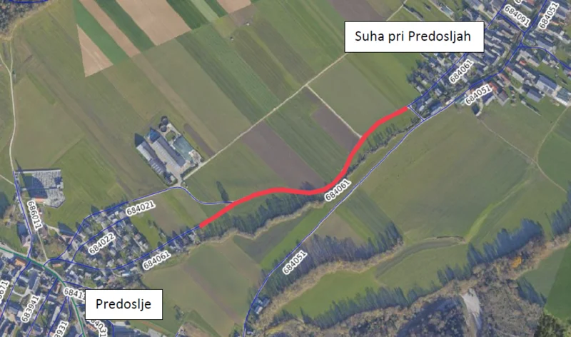 Mestna občina Kranj obvešča o popolni zapori javne poti Predoslje-Suha II (JP 684061) med naseljema Predoslje in Suha pri Predosljah.